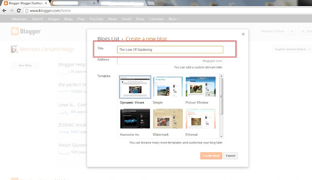 Once you sign in, on Blogger home screen, click on "New Blog" button as shown in the figure below. (Click on the image to open and enlarge)Step 2: Blog Title