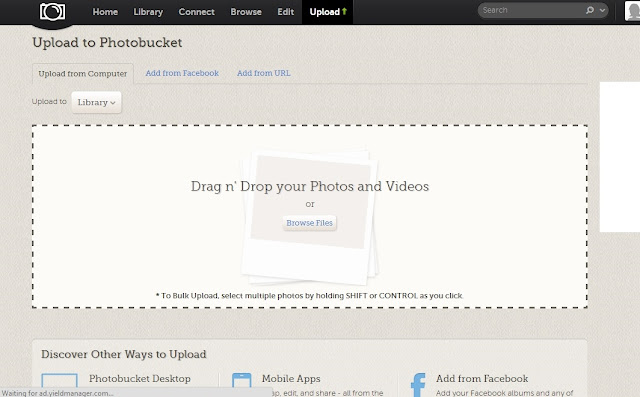 1. To start with making our very own blog button, first we need to host our button image somewhere. For this, a very easy and free option is Photobucket.com. Go to the Photobucket home page and make a free account. If you use some other image hosting website, you can use that too. For beginners who know little about image hosting, Photobucket offers a very simple and free solution. This tutorial will use Photobucket in its steps.2. Once you sign in into your Photobucket account, your Home screen will look a little something like the above image. Your last uploaded image will be visible as cover photo of your Photobucket album.